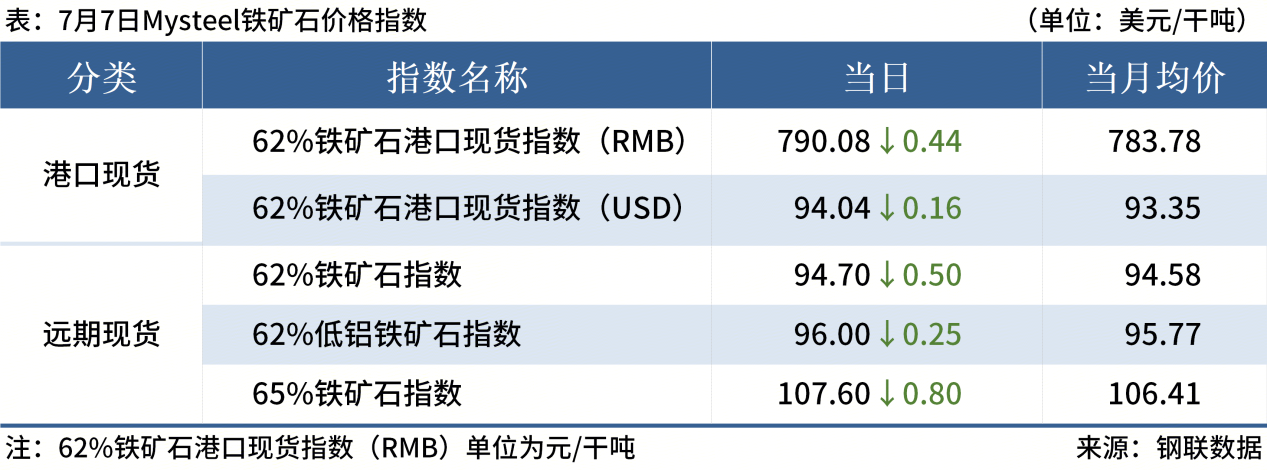◎ 7月7日,全國主港鐵礦石成交85.80萬噸,環(huán)比減8.1%;237家主流貿(mào)易商建筑鋼材成交9.59萬噸,環(huán)比減0.2%。