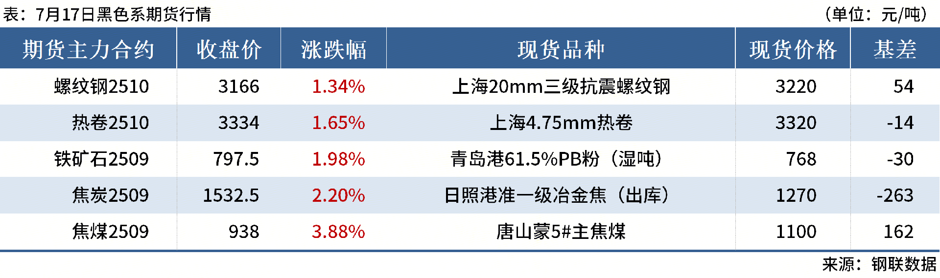 ◎7月17日,河北、山東主流鋼廠對焦炭采購價(jià)進(jìn)行首輪上調(diào),干熄焦上調(diào)55元/噸,濕熄焦上調(diào)50元/噸。