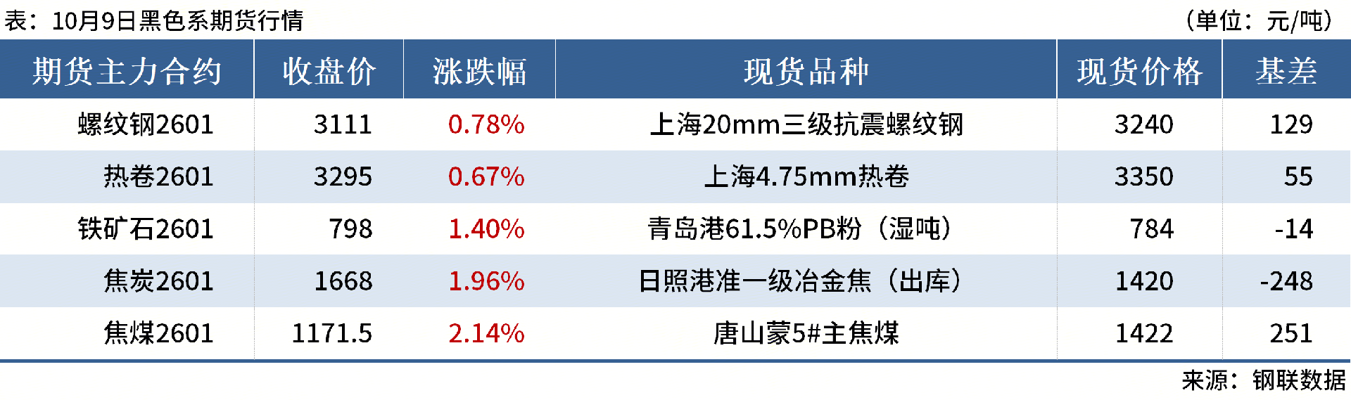 ◎10月9日,全國(guó)主港鐵礦石成交98.00萬(wàn)噸,環(huán)比增397.5%;237家主流貿(mào)易商建筑鋼材成交11.99萬(wàn)噸,環(huán)比增49%。