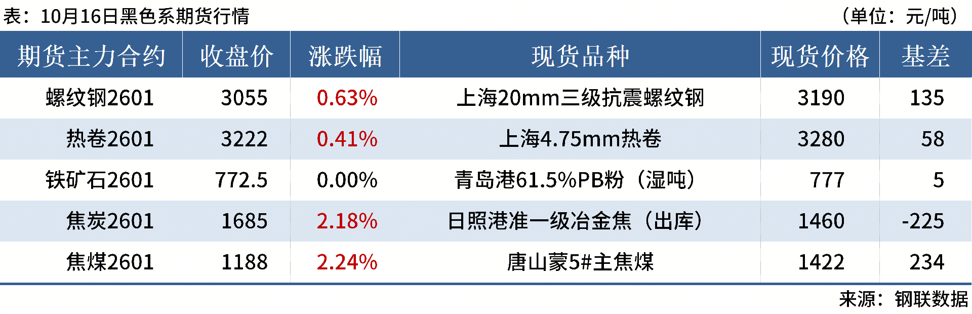 ◎ 10月16日,全國主港鐵礦石成交120.70萬噸,環(huán)比減3%;237家主流貿(mào)易商建筑鋼材成交10.18萬噸,環(huán)比增11.4%。